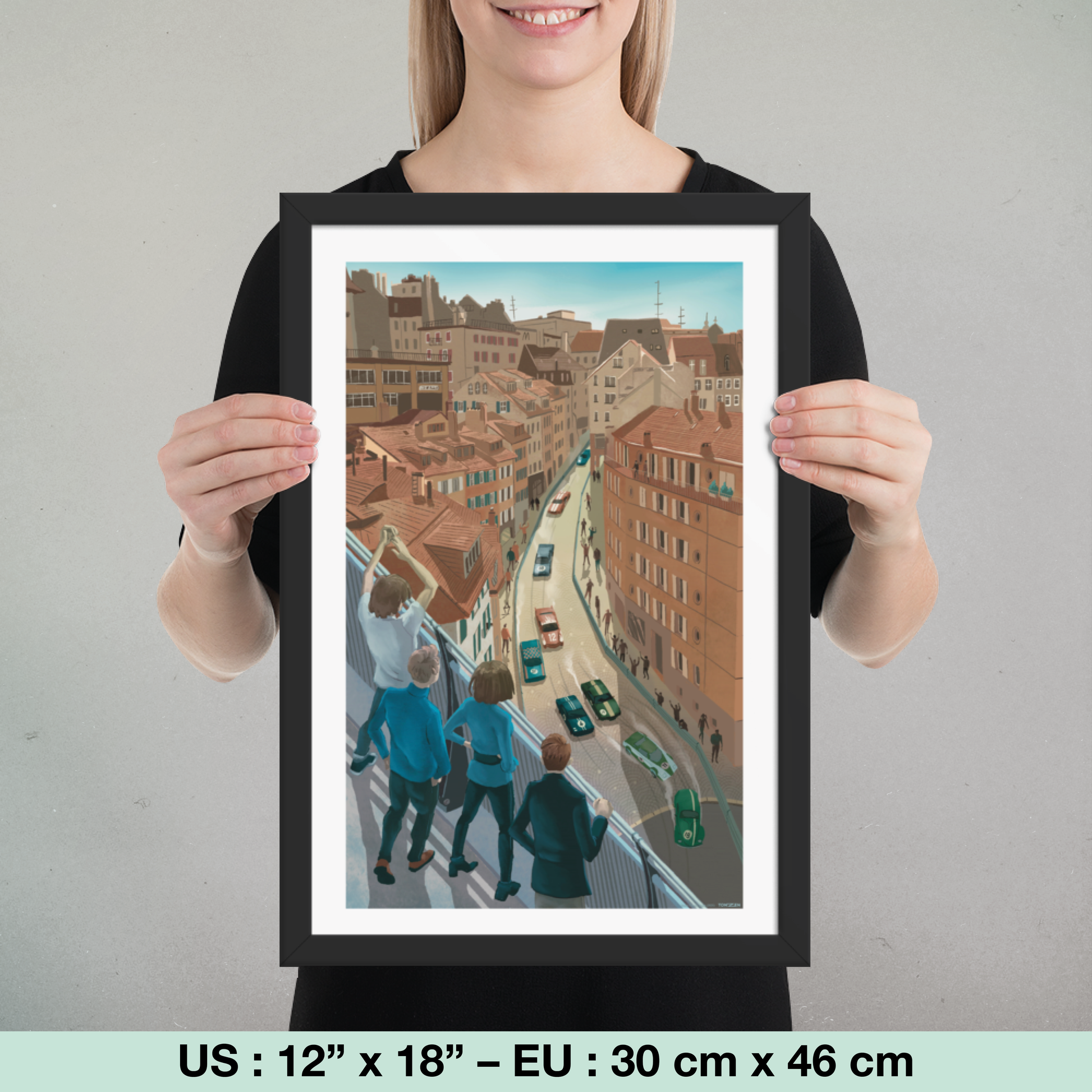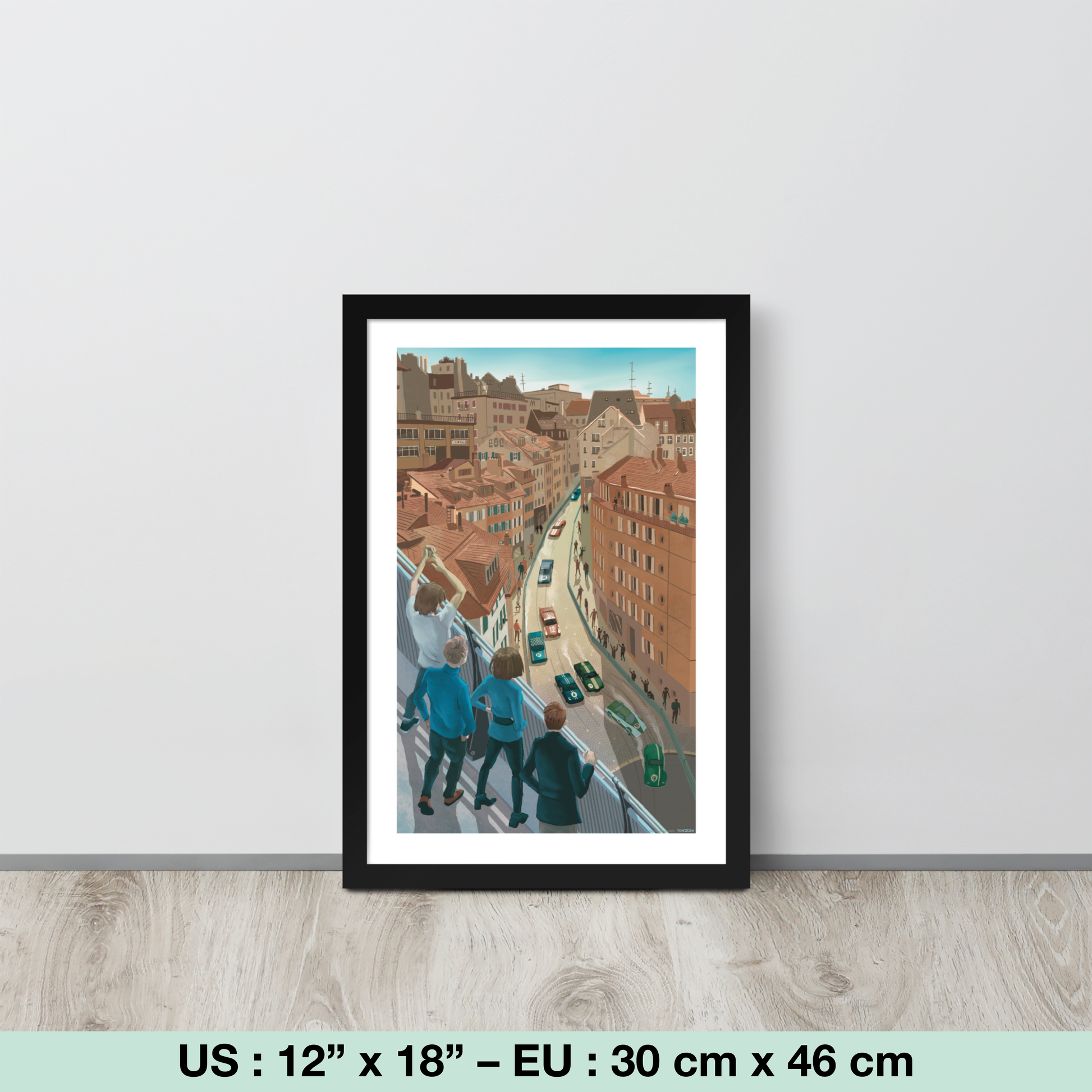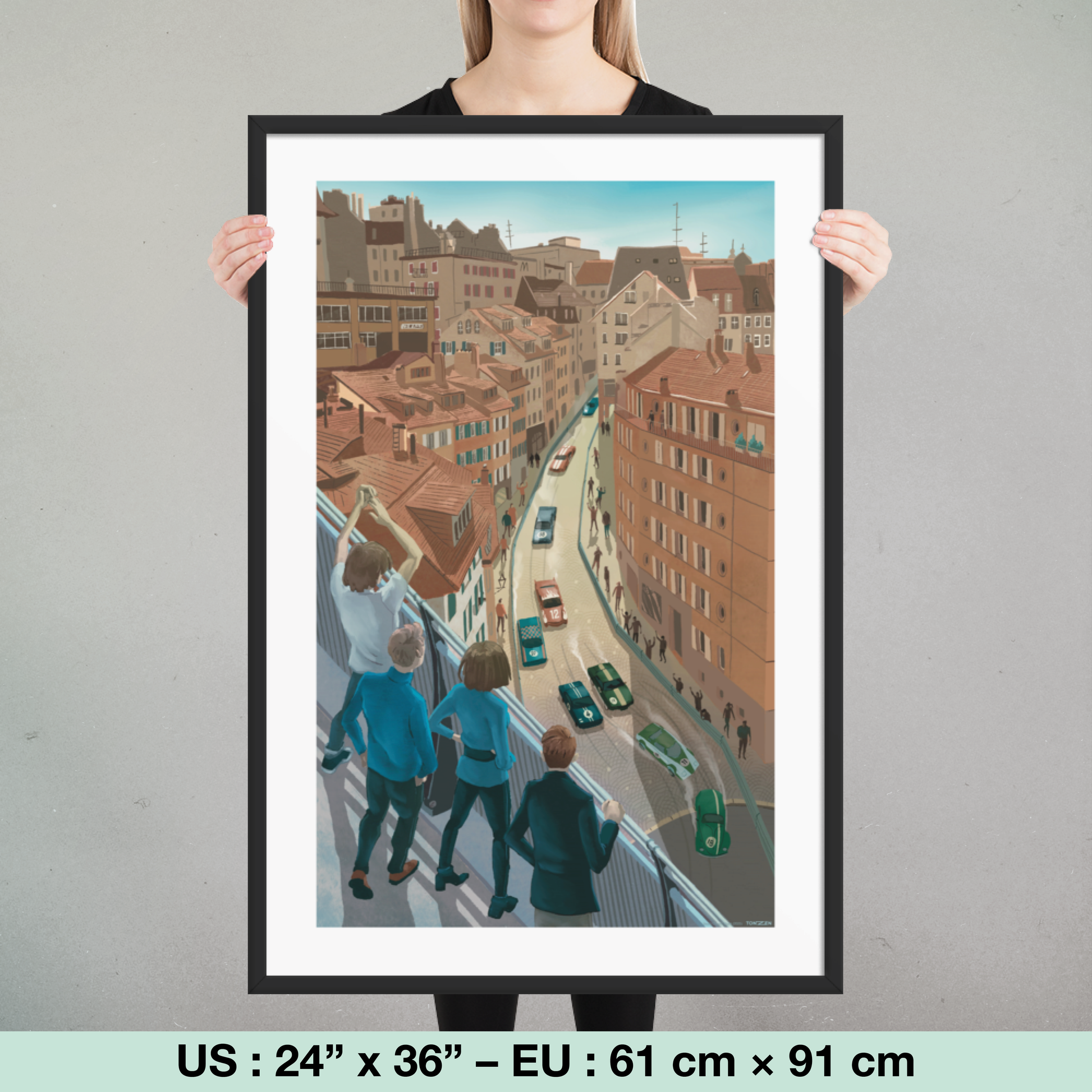 Poster encadré sur papier premium avec finition mi-brillante, mi-mate.