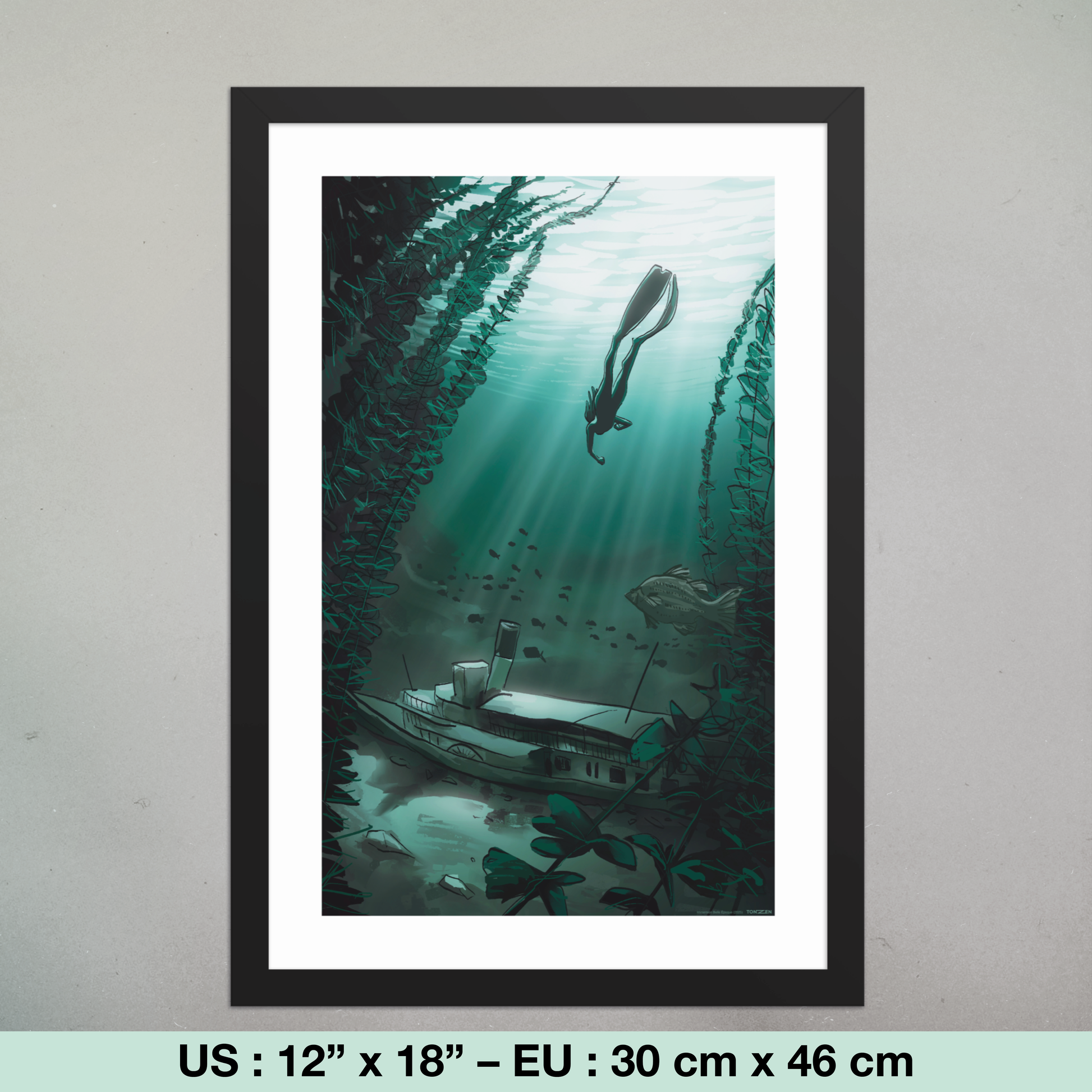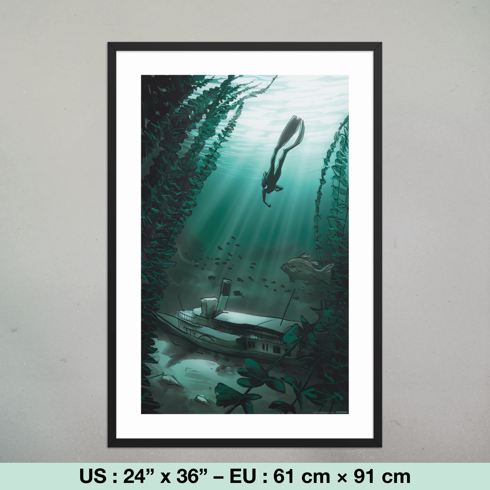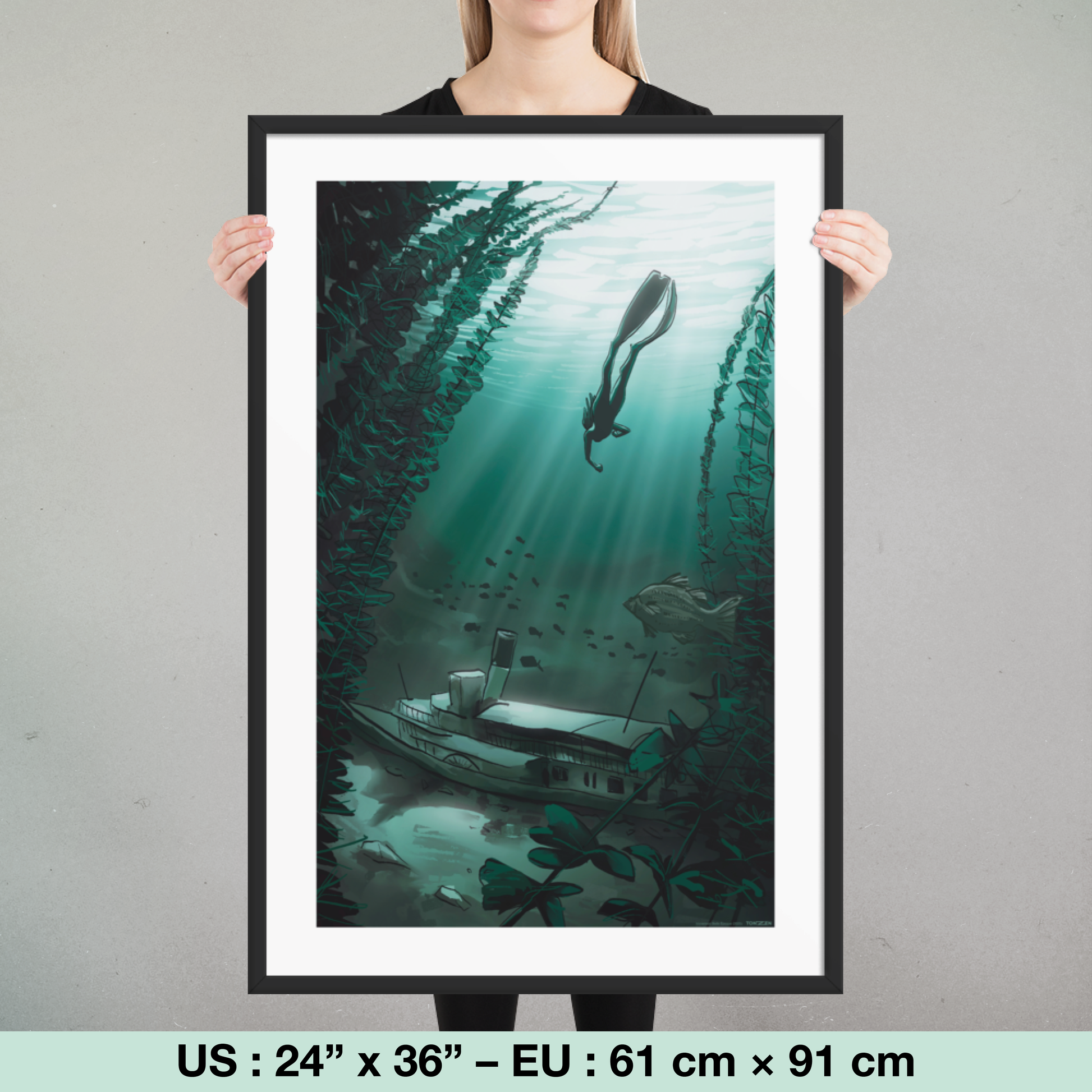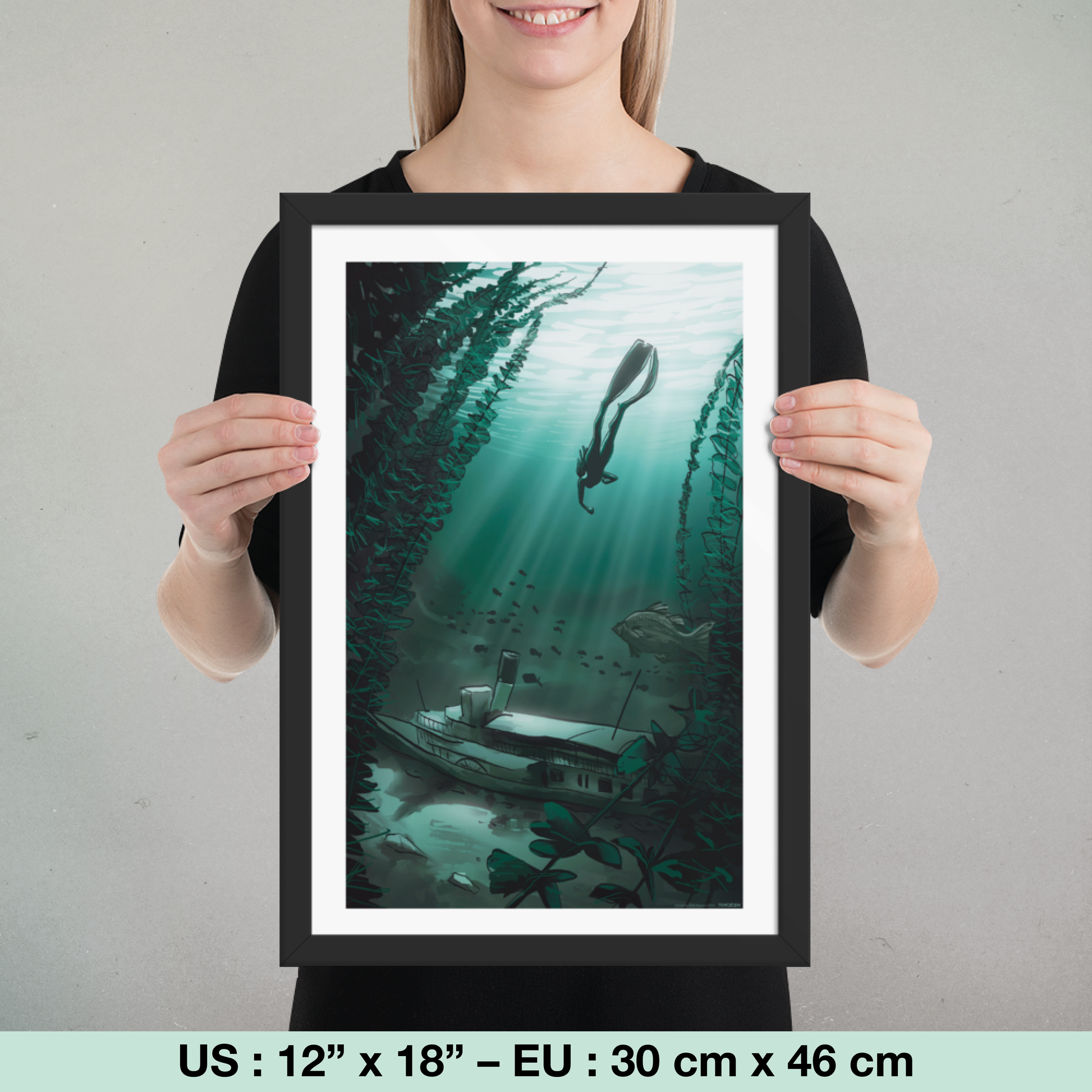 Poster encadré sur papier premium avec finition mi-brillante, mi-mate.