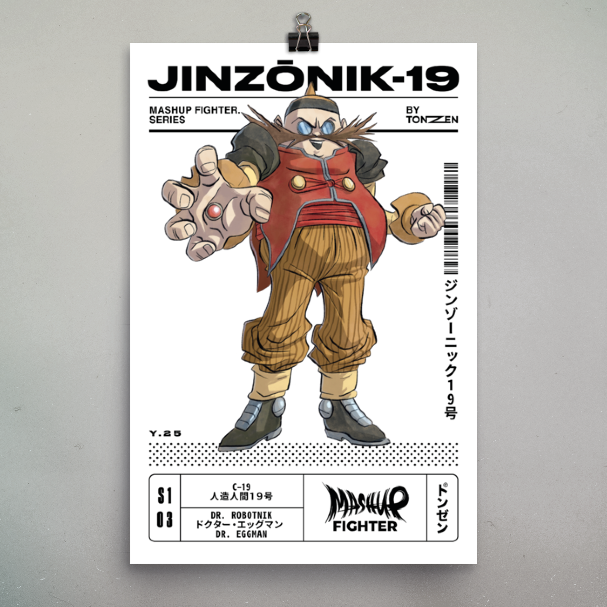Jinzōnik-19 est un personnage imaginé en combinant C19 (Humain Artificiel 19), créé par Akira Toriyama dans le manga Dragon Ball, et Robotnik, le méchant de la série Sonic, développé par Sega.