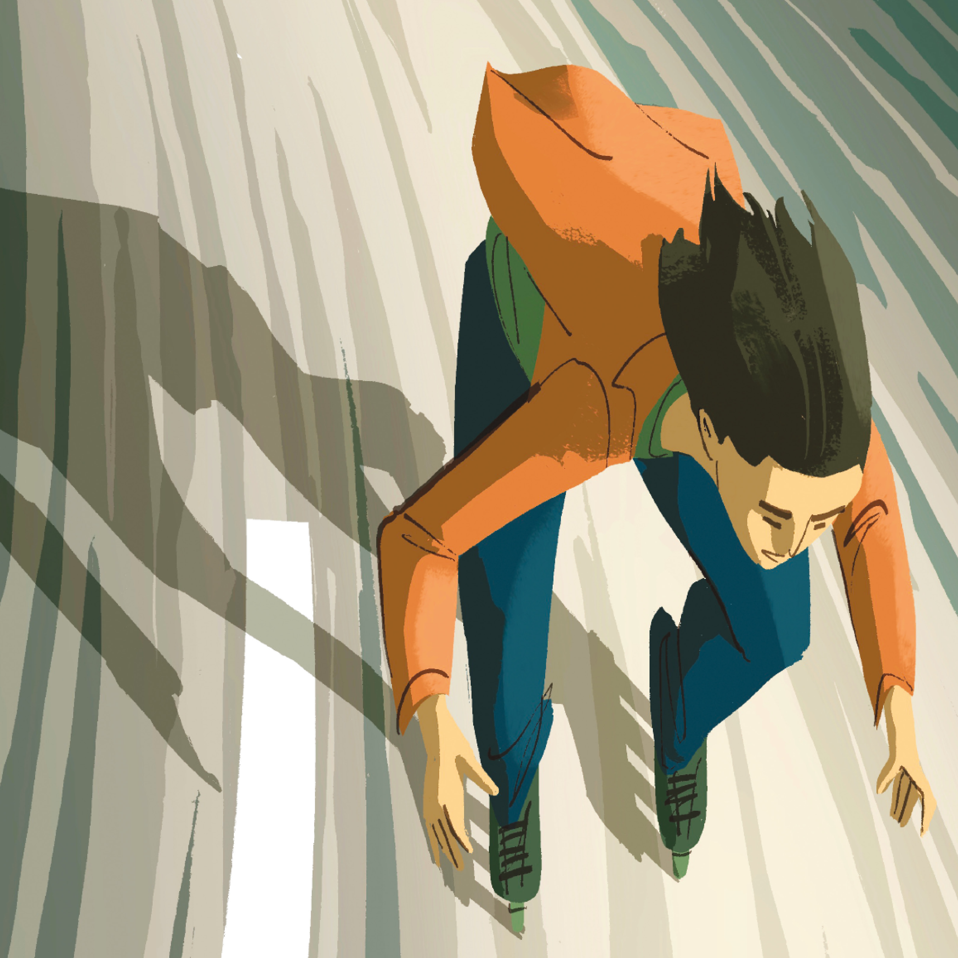 Illustration inspirée par Les Rollers sont entrés dans la ville, reportage de l’émission Tell Quel diffusé sur la Télévision suisse romande en 1994. Le personnage s’inspire largement d’Ivano Gagliardo, figure emblématique de ce mouvement.